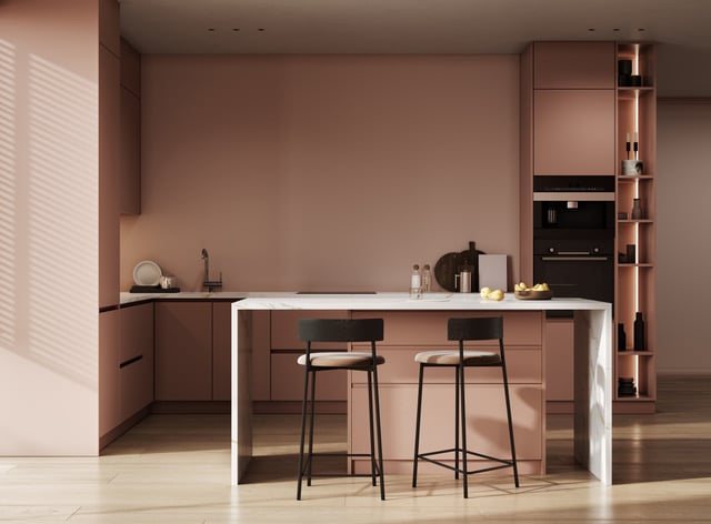 Warme zandkleuren, lichtbeige, zachte taupe, houtachtige nuances en zandsteen-rood brengen rust en een gevoel van natuur in huis. Deze tinten passen uitstekend bij hout, natuursteen of matte werkbladen. Combineer met donkere accenten zoals grafietgrijs of zwart voor contrast zonder dat het hard wordt.